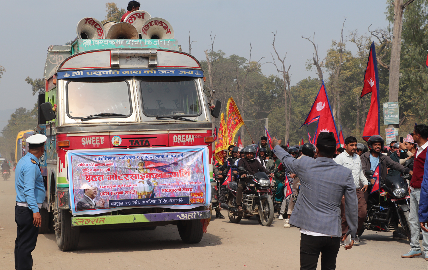 अत्तरिया – कैलालीको अत्तरिया देखी धनगढीसम्म मंगलबार वृहत् मोटरसाइकल र्याली आयोजना गरियो । सार्वभौमता, स्वाधीनता र राष्ट्रिय एकता कायम गर्नका लागि भन्दै राष्ट्रवादी युवा समूहले राष्ट्रिय झण्डा सहितको वृहत् र्याली निकालेको थियो, जसको नेतृत्व युवा नेता बिराज बिष्टले गरेका थिए । कैलालीको गोदावरी नगरपालिका– ४ निवासी बिष्टले पछिल्लो केही समययता अन्तर्राष्ट्रिय स्तरमा देशको स्वाभिमान घट्दै आएको बेलामा राष्ट्रवादी योद्धाहरू जाग्न जरुरी रहेको सन्देश दिनलाई र्यालीको आयोजना गरिएको बताएका थिए । वृहत् र्यालीमा हजारौँको सङ्ख्यामा मोटरसाइकल र त्यस्तै मानिसहरूको भिड थियो । सो भिडको नेतृत्व गरी शान्त एवम् सहजतापूर्वक कार्यक्रम सम्पन्न गर्न सक्नु युवा नेतृत्वको लागि चुनौती नै थियो । तर सो चुनौतीलाई सहजै स्वीकार गरी बिष्टले सफलतापूर्वक र्याली सम्पन्न गरे ।