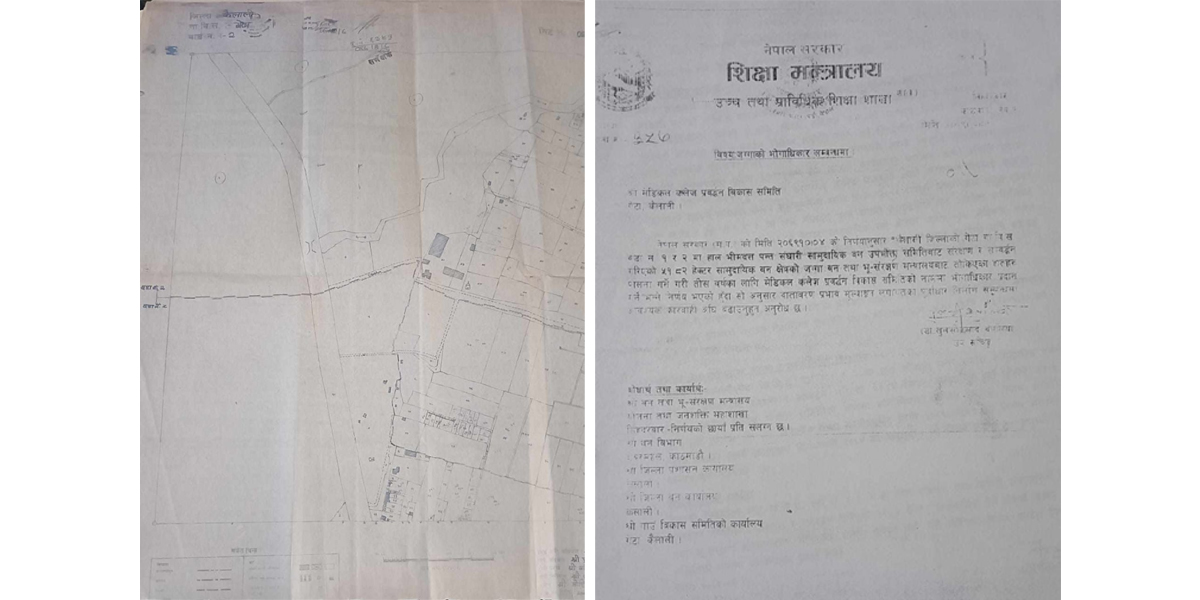 अत्तरिया – २०६९ माघ ४ गते नेपाल सरकारको मन्त्रिपरिषद्ले भीमदत्त पन्त संघारी सामुदायिक वन उपभोक्ता समितिले संरक्षण र सम्बर्द्धन गरिरहेको ५१.८ हेक्टर जग्गा तत्कालीन मेडिकल कलेज विकास पर्वद्धन समितिलाई हस्ताक्षर ग-यो । उक्त जग्गा मेडिकल कलेज बनाउन २०५६ सालमा शंकर मेडिकल एण्ड रिसर्च सेन्टर (संकाराचार्य) लाई दिइएको भए पनि उनले काम गर्न नसकेपछि पुनः वनले संरक्षण गर्दै आएको थियो । पछि नेपाल सरकारले आफै मेडिकल कलेज बनाउने भन्दै संकाराचार्यलाई दिएकै जग्गा तत्कालीन मेडिकल कलेज विकास प्रवद्र्धन समितिलाई भोगाधिकारका लागि उपलब्ध गराएको थियो ।