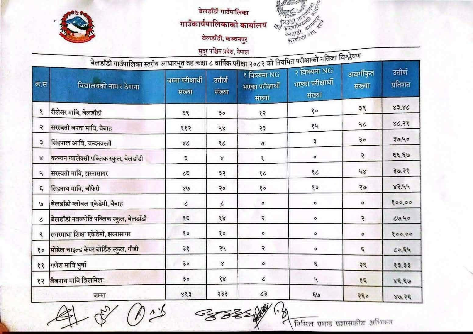 बेलौरी – बेलडाँडी गाउँपालिकामा पालिका स्तरीय आधारभूत तह कक्षा ८ को परीक्षामा आधा भन्दा बढी विद्यार्थी अनुत्तीर्ण भएका छन् ।