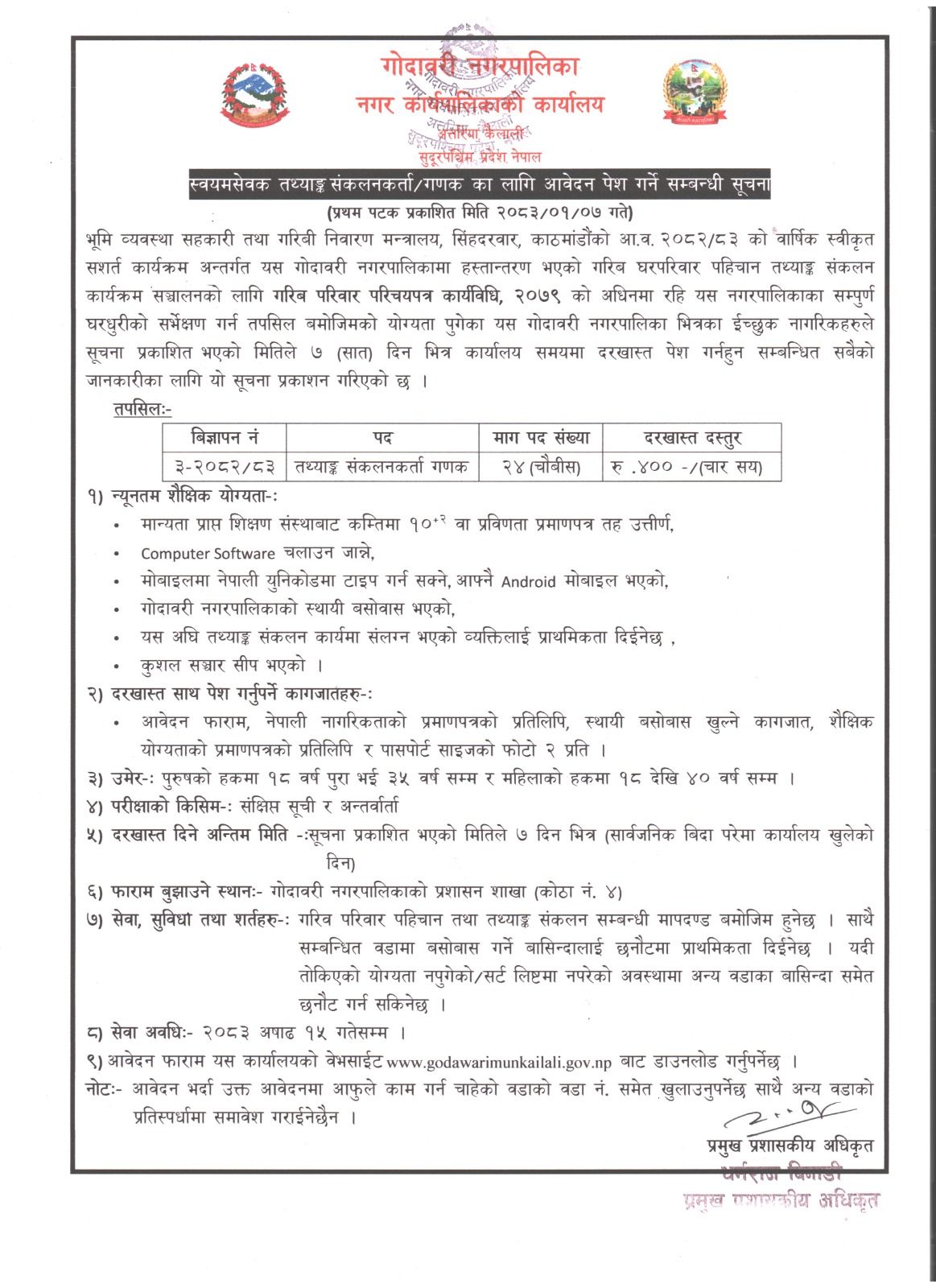 गोदावरीमा गरिब घरपरिवार पहिचान गर्न २४ जना गणक माग