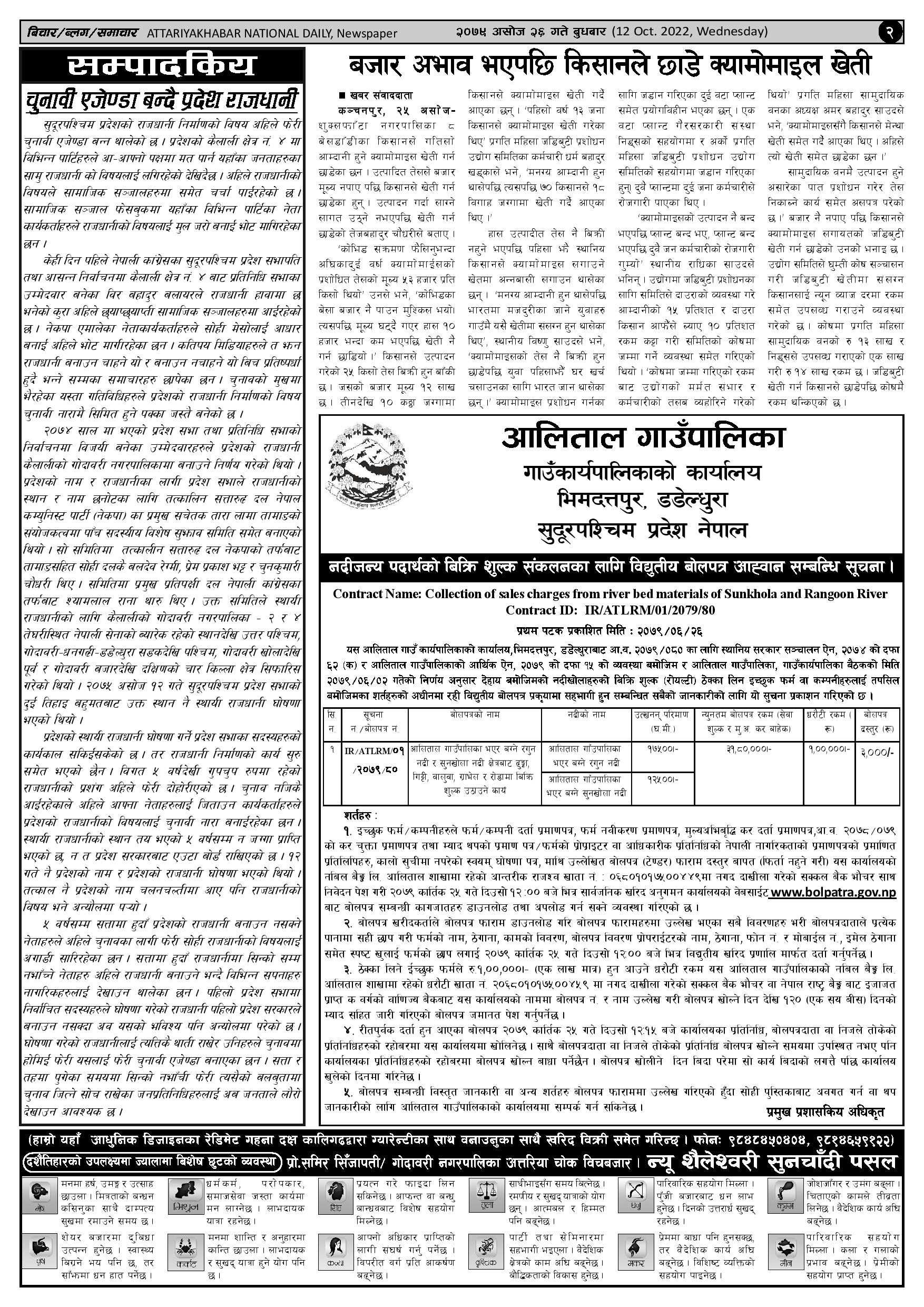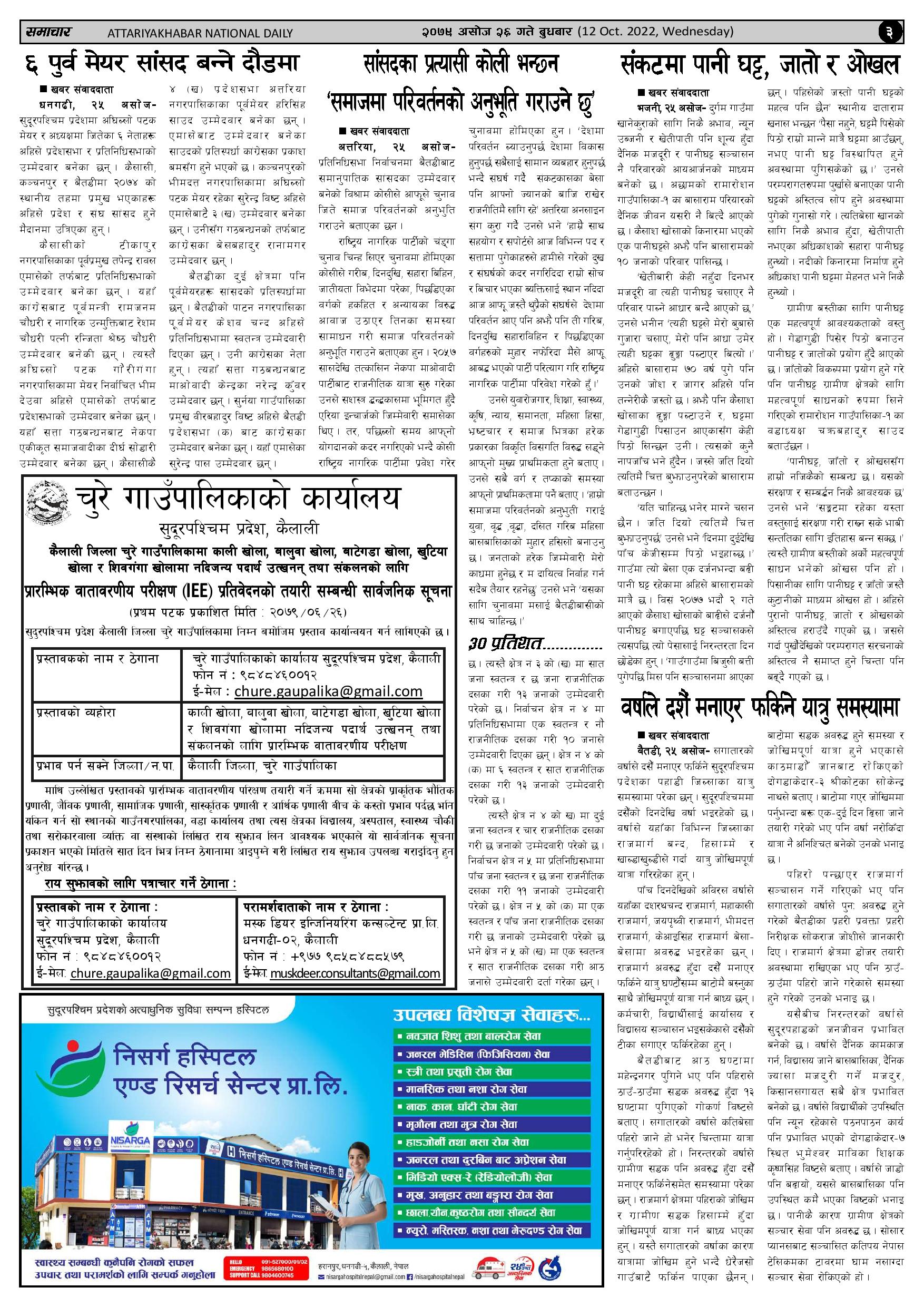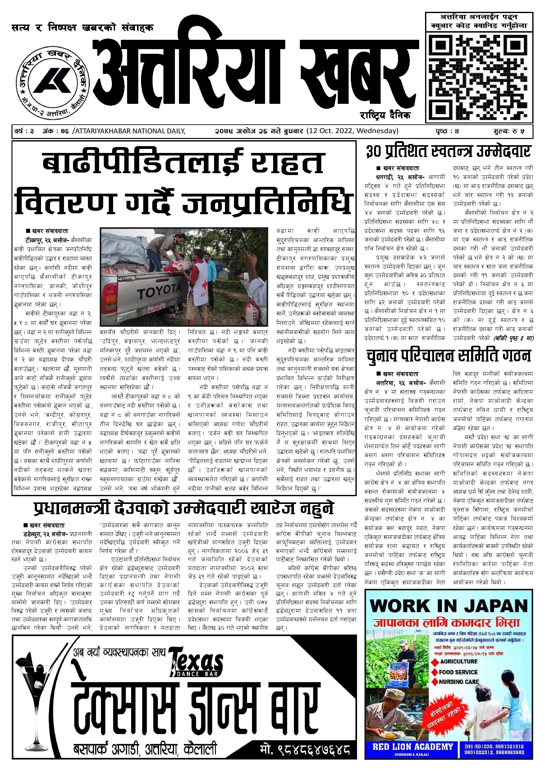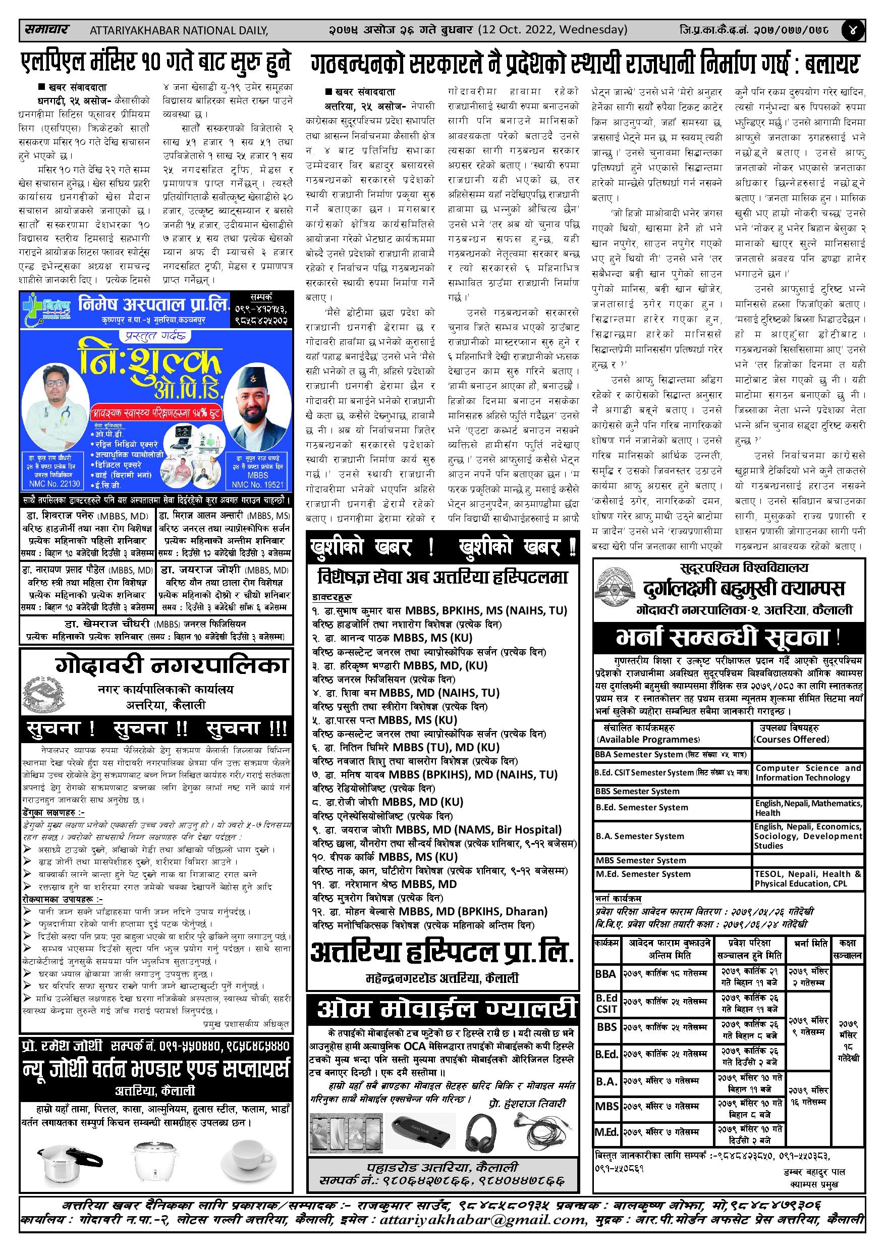 २०७९ असोज २६ गते प्रकाशित अत्तरिया खबर दैनिक