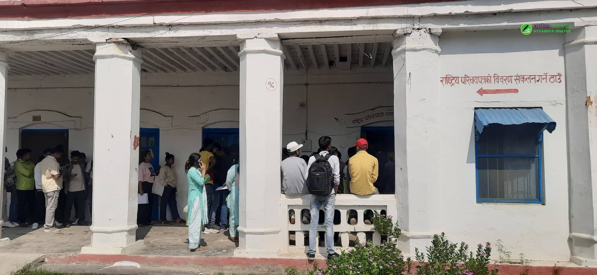राष्ट्रिय परिचय पत्र लिनेको भिड । सरकारले राष्ट्रिय परिचय पत्र अनिवार्य गरेपछि जिल्ला प्रशासन कार्यालय कैलालीमा दैनिक जसो भिड लाग्ने गरेको छ ।
