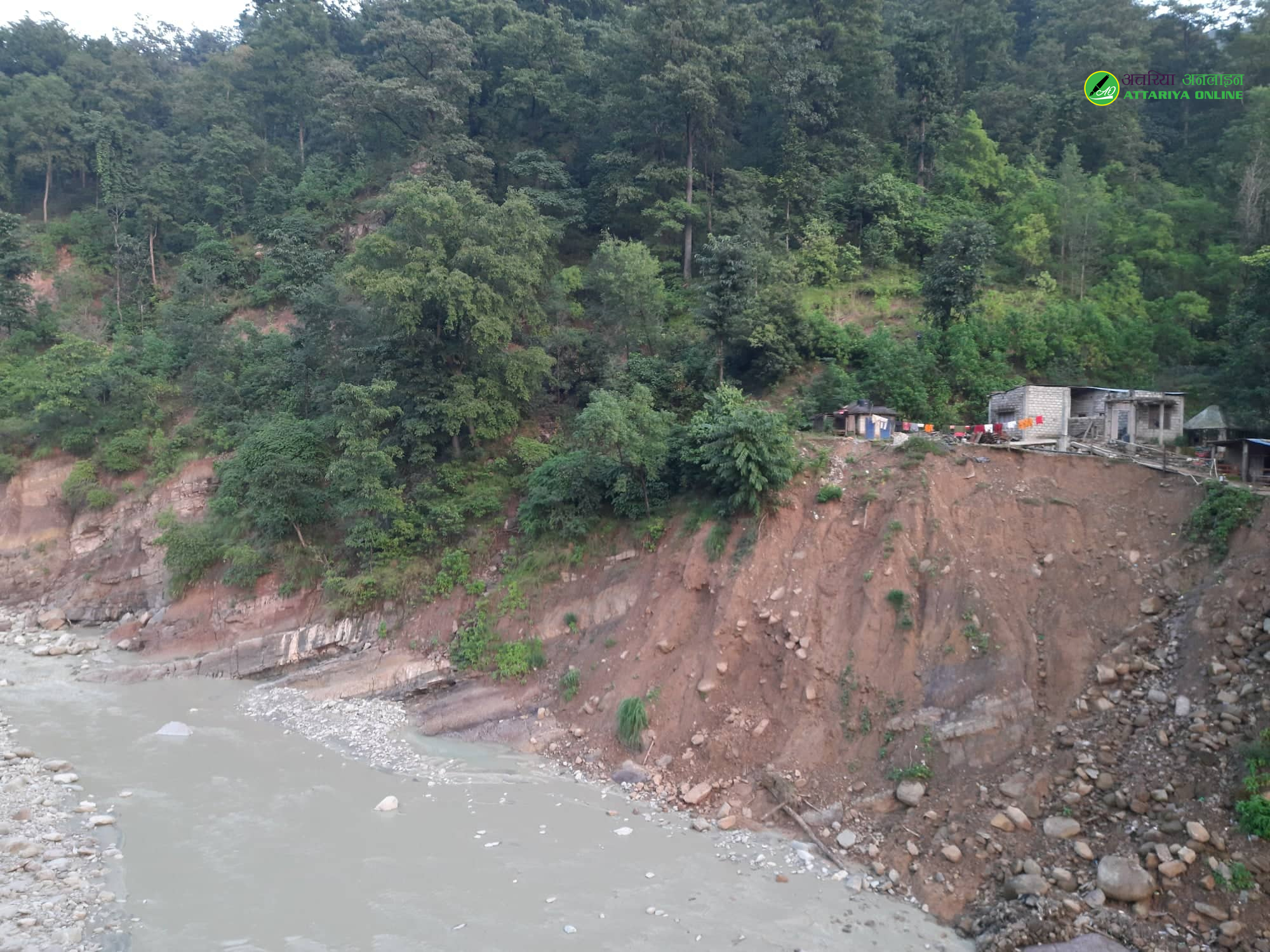 कैलालीको गोदवारीमा पहिरोको जोखिममा रहेको घर । गोदावरीको काठे पुल संगै जोडिएको यो घर गत बर्ष नै पहिरो जादाँ जोखिममा परेको थियो ।