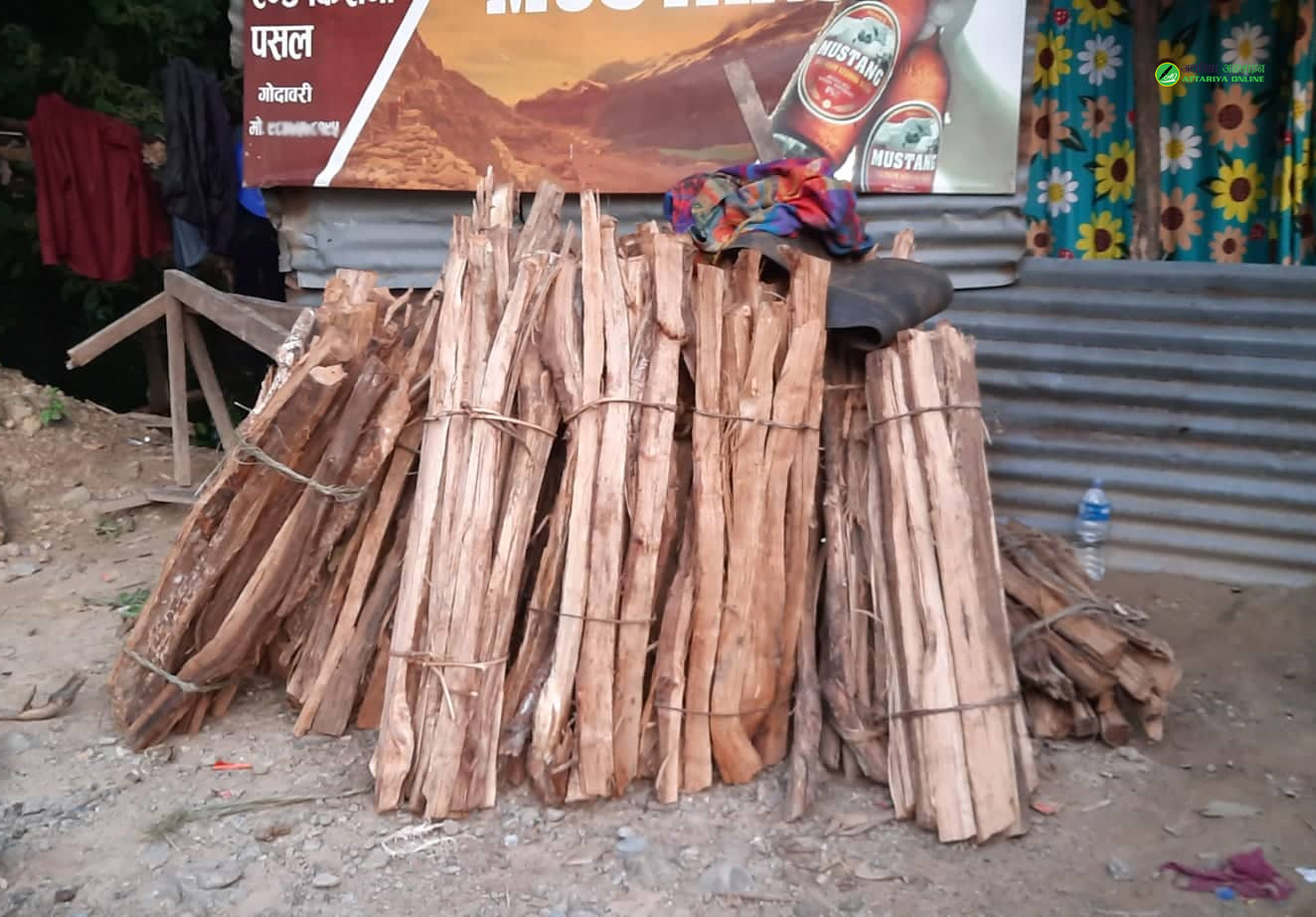 कैलालीको गोदावरीमा बिक्रिका लागि राखिएका दाउरा । यस क्षेत्रका अधिकांस व्यवसायीहरुले गाउँबाट ल्याइएका दाउरा किनेर बिक्री गर्ने गरेका छन ।