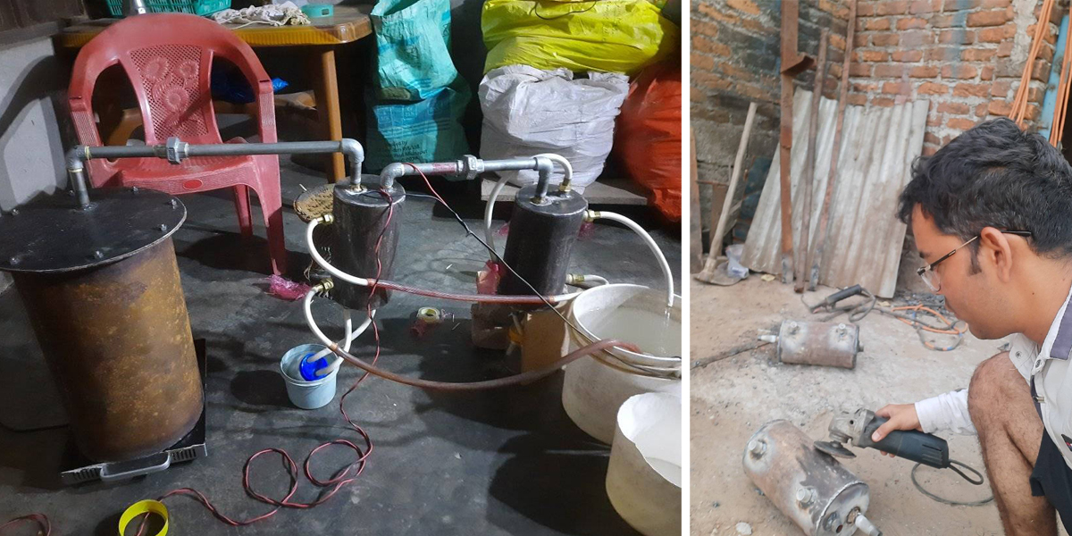 ‘ठूलो ड्रम (रियाक्टर) मा प्लाष्टिक हालिन्छ । प्लास्टिकलाई बाफमा रुपान्तरण गर्न यसलाई तताइन्छ । त्यसपछि पहिलो ड्रमबाट आएको बाफलाई तरल पदार्थमा बदल्नको लागि दोस्रो ड्रममा कुलिङ सिस्टम जडान गरिएको छ’ उनले भने ‘कुलिङ सिस्टममा बाफ चिस्सिएर पेट्रोलियम पदार्थ र ग्यास निस्किन्छ । अर्को ड्रमबाट अलि लेदो पदार्थ निस्किन्छ । जसलाई ग्रीसका रुपमा प्रयोग गर्न सकिन्छ ।’
