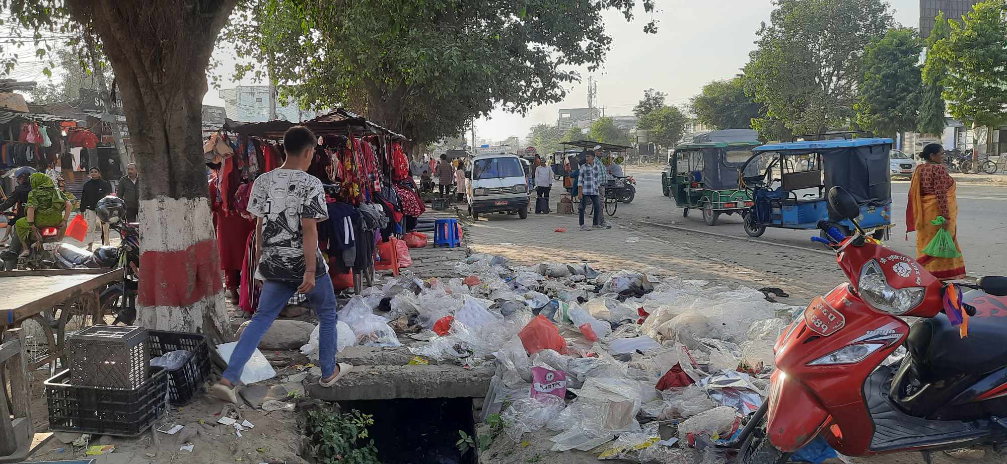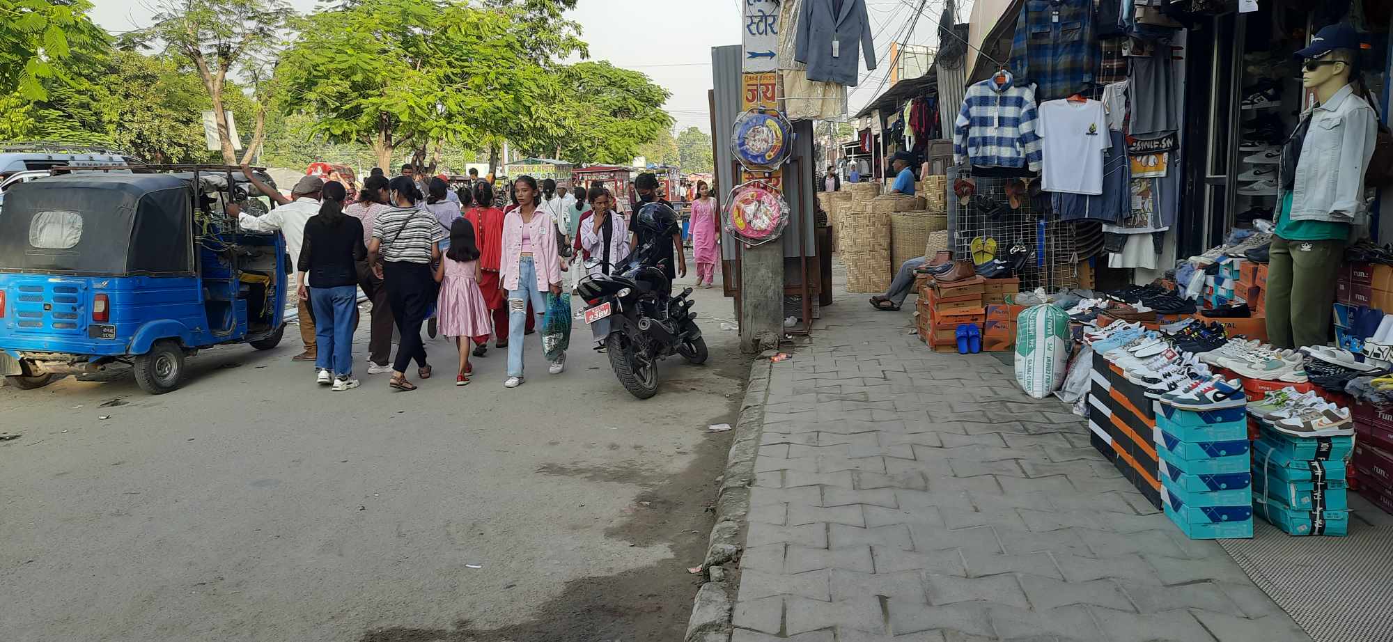 दशैँ यता बजार क्षेत्रमा तोकिएको भन्दा अन्य समयमा पनि ठेलागाडा राख्ने गरिएको छ भने सटरमा व्यवसाय गरिरहेका व्यवसायीले पनि फुटपाथमा सामान राख्न थालेका छन । नगरपालिकाले गत मंसिर महिनामा बजार क्षेत्रमा फुटपाथ अतिक्रमण गरी निर्माण गरिएका पसल अगाडिका पालि हटाएर सडकको क्षेत्राधिकार भित्र पर्ने संरचना हटाएको थियो । नगरपालिकाले फुटपाथ माथि व्यवसायीले निर्माण गरेका संरचना नहटाएपनि १ वर्ष नपुग्दै पुनः फुटपाथ ढाक्ने गरी पालि निर्माण गर्न थालिएका छन । फुटपाथमा पनि हिँड्नै नमिल्ने गरी सटर भाडामा लिएर बसेका व्यवसायीले ओगटेका छन ।