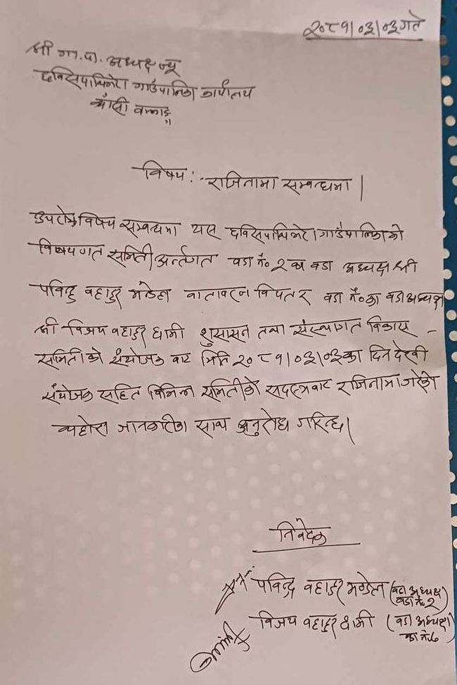 बझाङमा दुई वडाध्यक्षले विषयगत समितिबाट राजीनामा दिए
